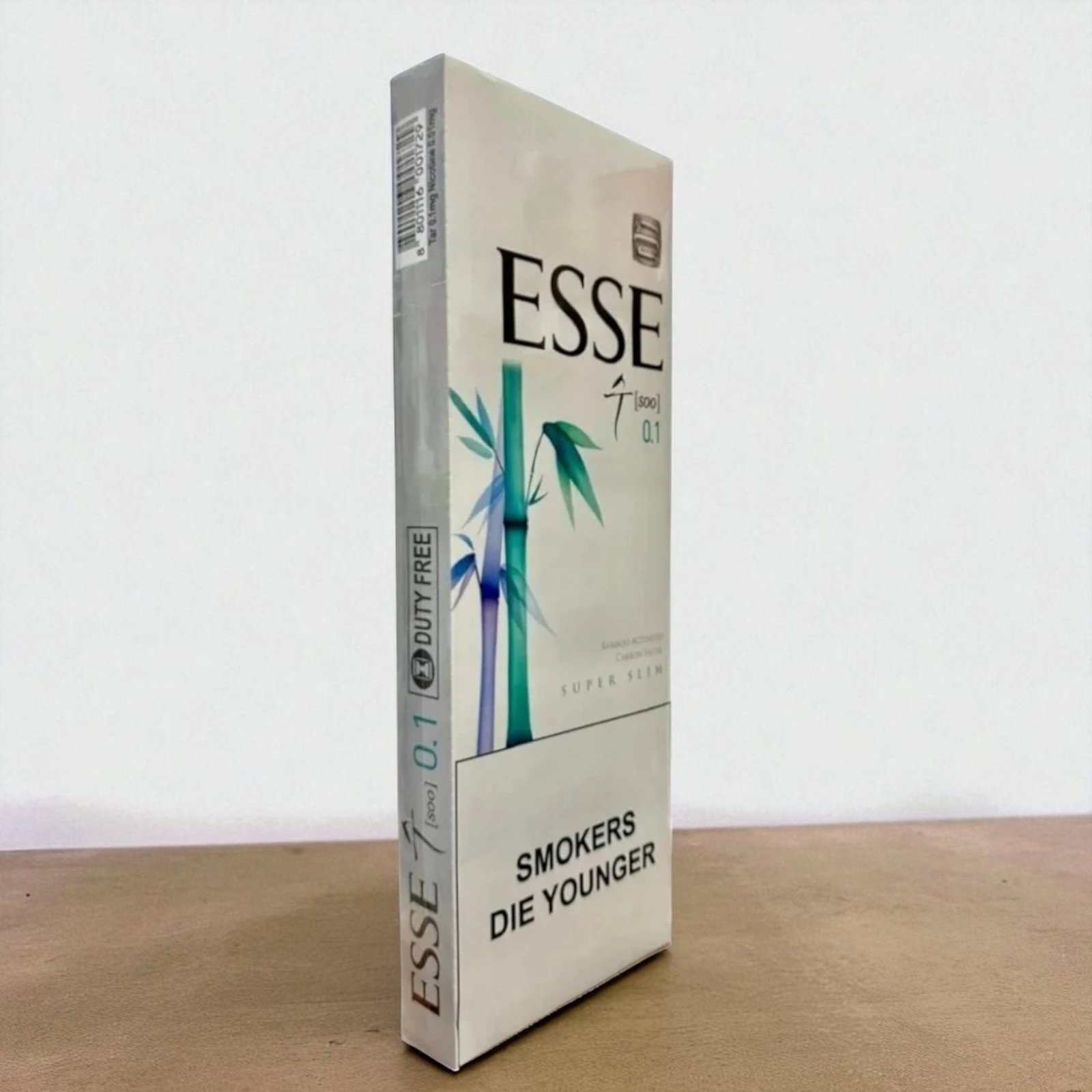 Esse Bamboo Soo สายไลท์ มาพร้อมคุณสมบัติที่ทำให้การสูบเป็นเรื่องง่ายและน่าประทับใจ ไม่มีเม็ดบีบ ให้สัมผัสการสูบที่นุ่มนวล ใบยาคุณภาพแน่นเต็มมวน ทาร์และนิโคตินต่ำเพียง 0.1 มก. นำเข้าจากเกาหลีใต้ภายใต้แบรนด์ Esse เป็นบุหรี่สลิมที่เหมาะกับไลฟ์สไตล์ทันสมัยของผู้สูบ