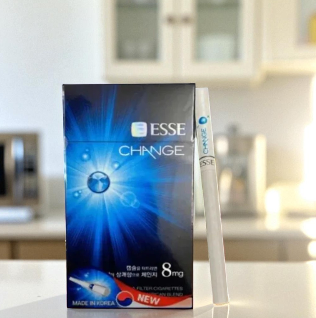 สัมผัสความเย็นสุดสดชื่นกับ Esse Change Menthol บุหรี่เม็ดบีบกลิ่นเมนทอลที่สูบง่าย ไม่แสบคอ ตัวมวนสลิมดีไซน์ทันสมัย พกพาสะดวก นำเข้าจากเกาหลีโดยแบรนด์ ESSE มาพร้อมทาร์ 8mg และนิโคติน 0.6mg ให้รสชาติที่สมดุล เหมาะสำหรับผู้ที่ต้องการบุหรี่สายเย็นคุณภาพสูงในทุกๆ วัน