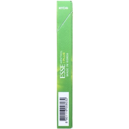 Esse Menthol+Plus บุหรี่สลิมจากเกาหลี ที่ได้รับความนิยมด้วยดีไซน์มวนเล็กพกพาง่าย และเม็ดบีบกลิ่นมะนาวเมนทอลสุดพิเศษ ใบยาเกรดพรีเมี่ยมให้รสชาตินุ่ม ก้นกรองไม่หวาน เน้นรสแท้ของใบยา ด้วยทาร์ 5 มก. และนิโคติน 0.4 มก. Esse Menthol+Plus จึงเป็นตัวเลือกสำหรับผู้ที่ต้องการบุหรี่คุณภาพสูง