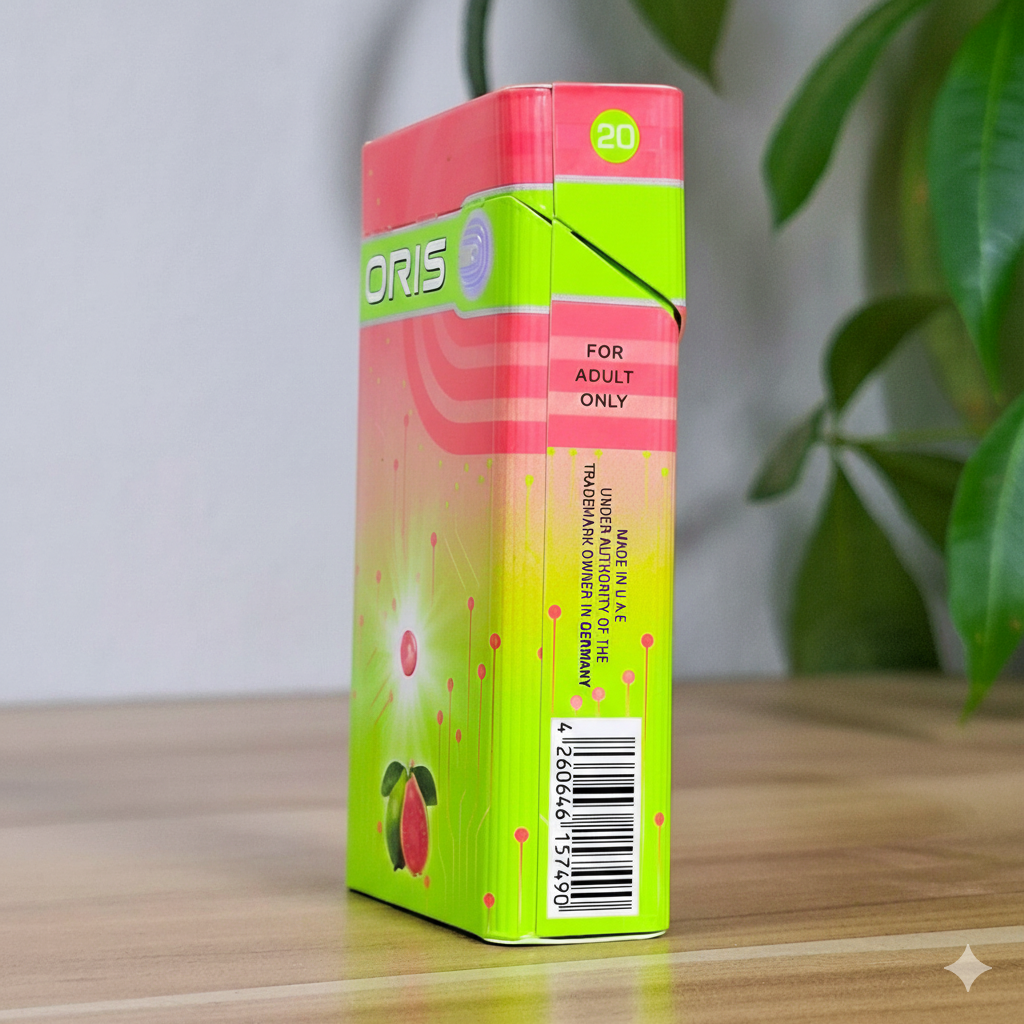 Oris Intense Guava ผสมผสานกลิ่นฝรั่งหอมหวานกับความเย็นจากก้นกรอง Hallo Filter ได้อย่างลงตัว ผลิตจากใบยาคุณภาพสูงในเยอรมนี ให้รสชาติเข้มข้นแต่สูบนุ่ม ไม่ระคายคอ เหมาะสำหรับผู้ที่ชื่นชอบบุหรี่กลิ่นผลไม้และต้องการความสดชื่นในทุกคำสูบ