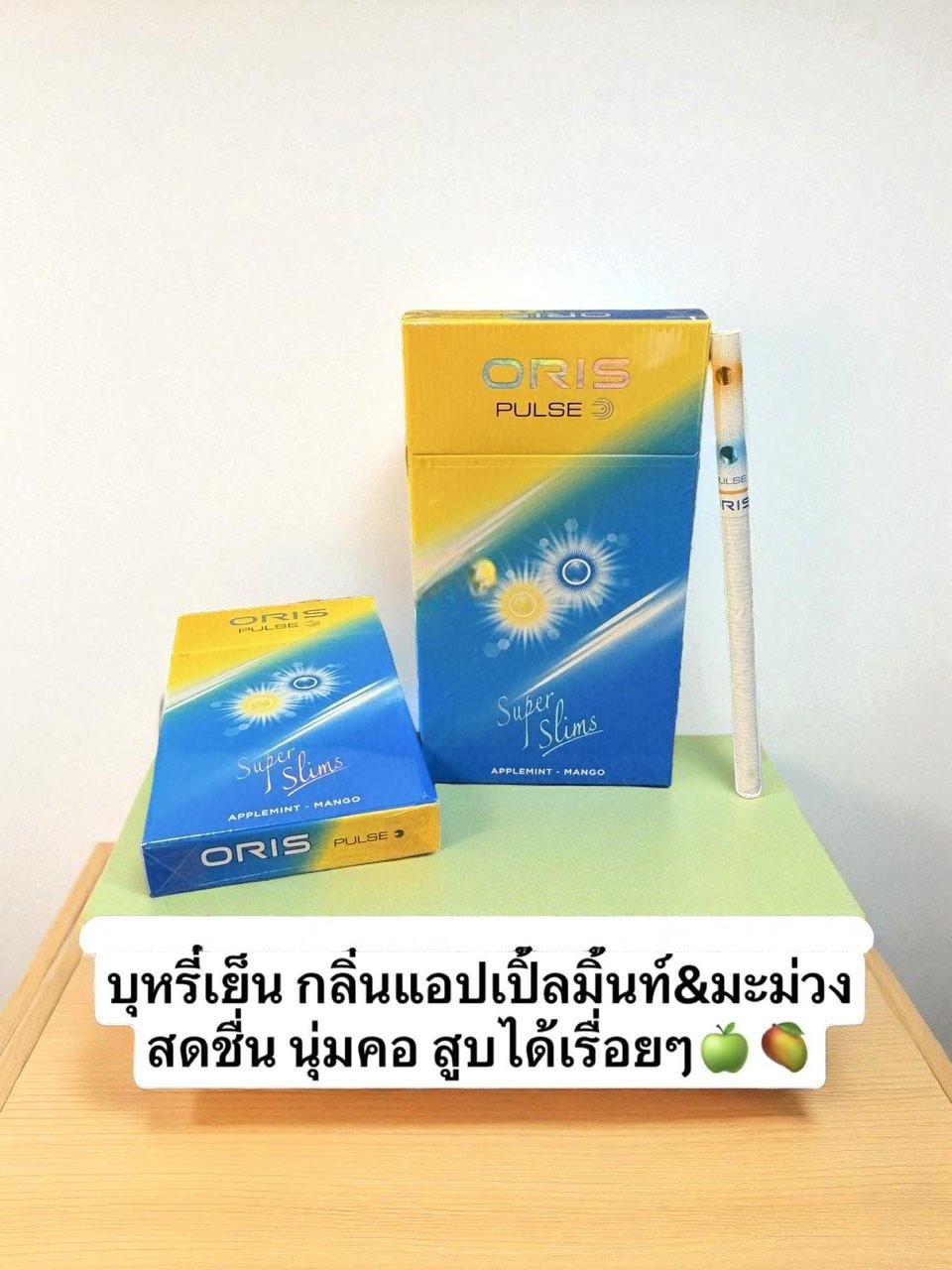 บุหรี่ Oris Pulse Applemint Mango สายเย็น 2เม็ดบีบ หอมกลิ่น🥭มะม่วง💧มิ้นต์ สูบนุ่มๆไม่แสบคอ หวานมิ้นต์ติดปากอย่างชัดเจน ใบยาแน่นดีเกรดพรีเมี่ยม มวนเล็กสลิมนำเข้าจาก 🇩🇪Germany แบรนด์ Oris  มีทาร์ 4mg มีนิโคติน 0.3mg 1คอต มี10ซอง 1ซอง มี20มวน