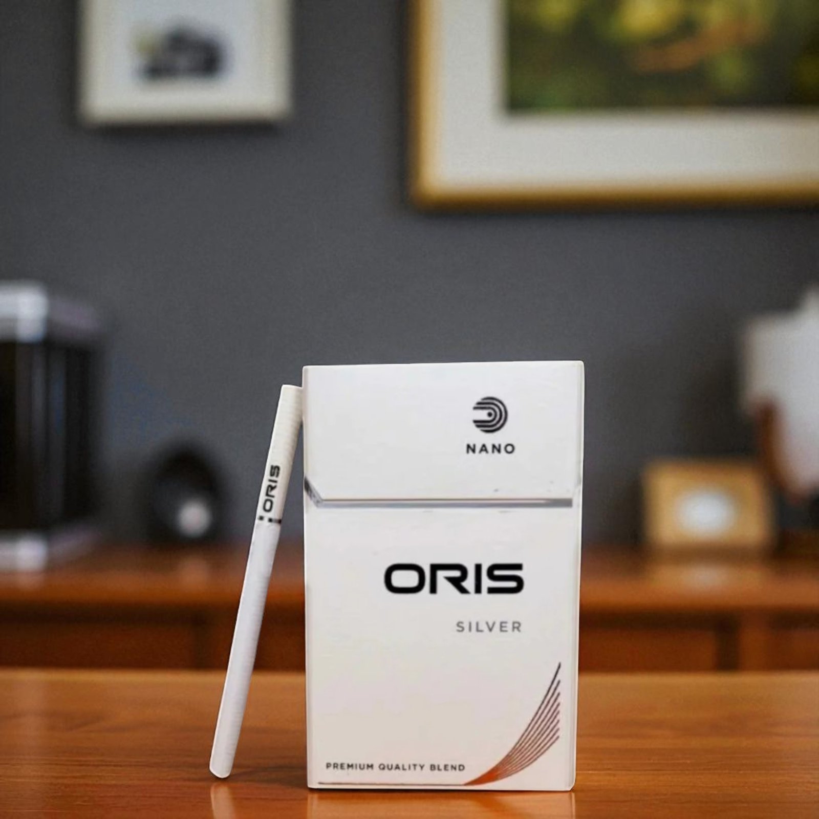 บุหรี่ Oris Silver Slims ซองแข็ง ตัวเลือกสำหรับนักสูบที่มองหาความนุ่มนวลและคุณภาพระดับพรีเมียม ด้วยดีไซน์มวนเล็ก Nano ใบยาแน่นเต็มคำ