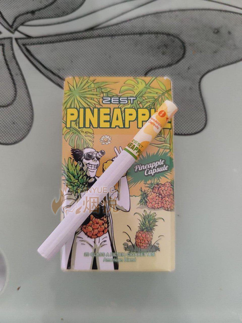 บุหรี่ Zest Pineapple เย็น เป็นผลิตภัณฑ์คุณภาพสูงนำเข้าจากเกาหลี โดดเด่นด้วยกลิ่นหอมของสัปปะรดและความเย็นสดชื่นจากการบีบเม็ด ด้วยใบยาเกรดพรีเมี่ยม มวนขนาด 7.1 มม. สูบนุ่ม ไม่แสบคอ มีทาร์ 8 มก. และนิโคติน 0.4 มก. บรรจุ 20 มวนต่อซอง และ 10 ซองต่อคอต เหมาะสำหรับผู้ที่มองหาประสบการณ์สูบที่แตกต่างและมีคุณภาพ