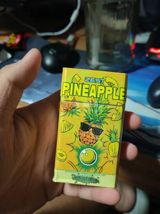 Zest Pineapple เย็น มาพร้อมกลิ่นสัปปะรดที่หอมละมุน ผสานความเย็นจากเม็ดบีบ สร้างความสดชื่นทุกคำสูบ ใบยาคุณภาพสูง มวนแน่น ขนาด 7.1 มม. มีทาร์ 8 มก. และนิโคติน 0.4 มก. สูบลื่น ไม่แสบคอ นำเข้าจากเกาหลี การันตีมาตรฐาน เหมาะสำหรับทุกโอกาสที่ต้องการผ่อนคลาย